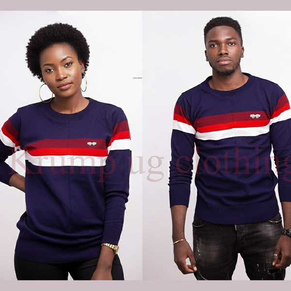 These are Krump Ug F3 sweaters in navy blue with colour and colour block white, red and maroon colour.