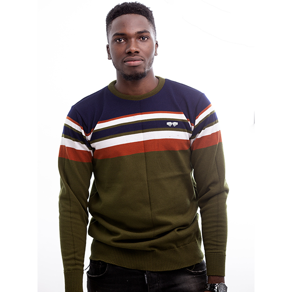 The F3 men’s sweater(Army green) with colour blocks of red, white and navy blue comes in. along sleeve and round neck fit for every day use both corporate or causal