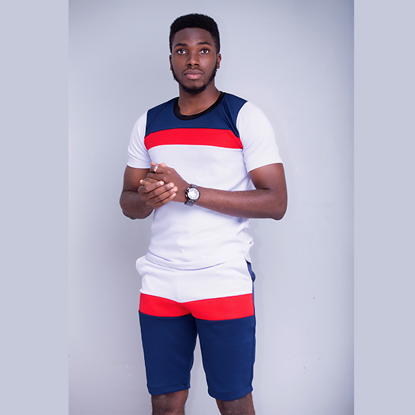 New danzle T-shirt and shorts is the revamped version of the last danzle wear. comes with white T-shirt with red navy blue colour block and navy blue shorts with a white red colour block to match the T-shirt.